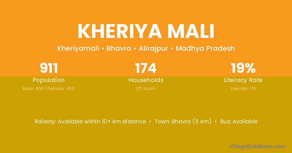 Bhavra (5 km) is the nearest town to Kheriya Mali village for major economic activities and is located approximately 5 km away.