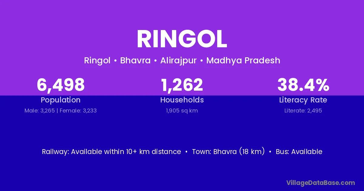 Bhavra (18 km) is the nearest town to Ringol village for major economic activities and is located approximately 18 km away.