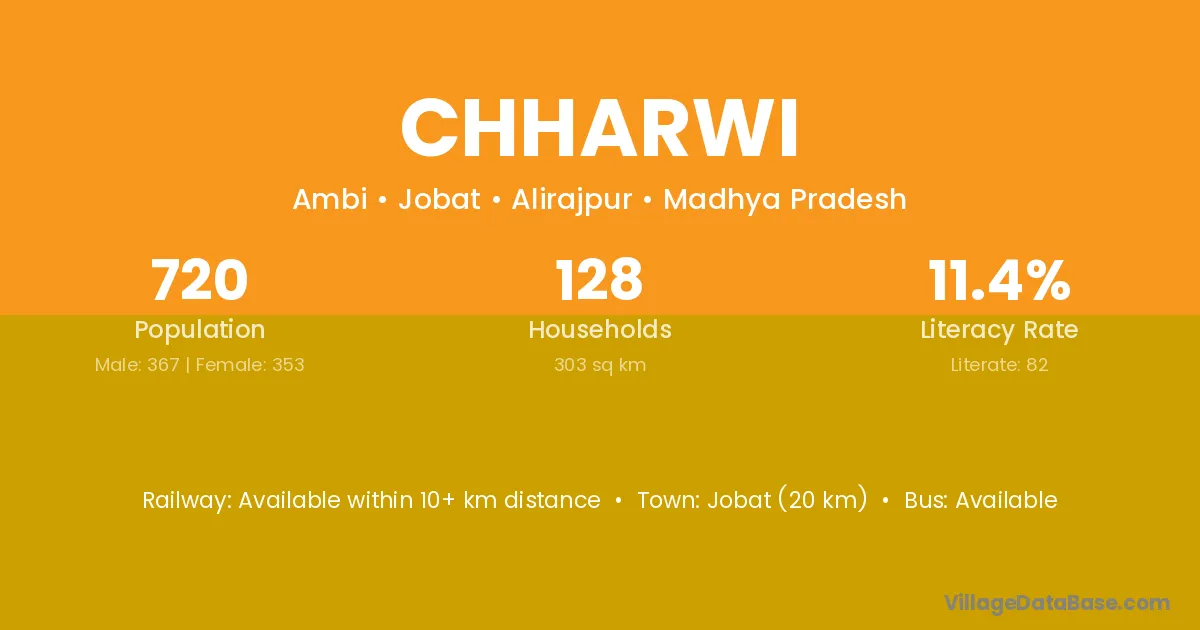 Chharwi village has a total population of 720 people, of which 367 are males and 353 are females.