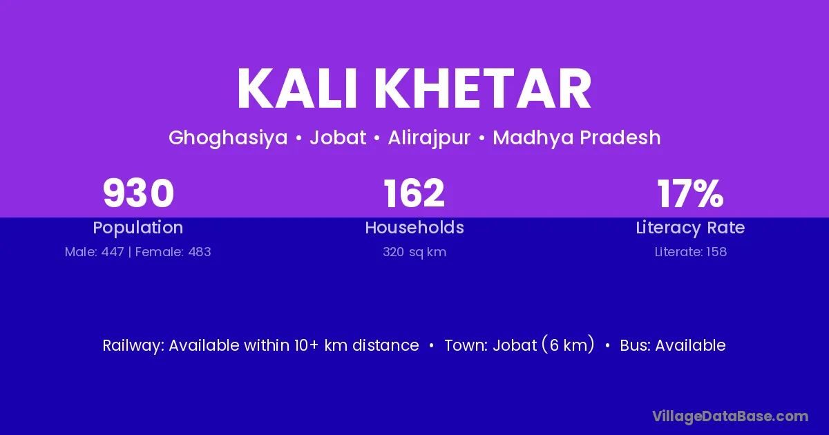 Jobat (6 km) is the nearest town to Kali Khetar village for major economic activities and is located approximately 6 km away.
