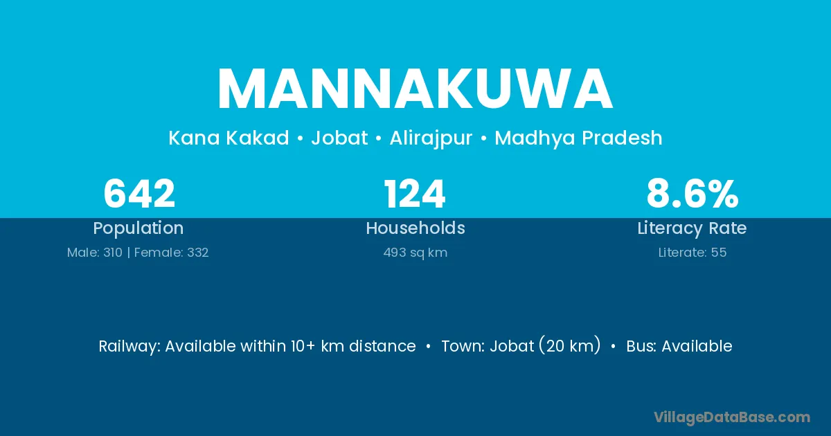Jobat (20 km) is the nearest town to Mannakuwa village for major economic activities and is located approximately 20 km away.