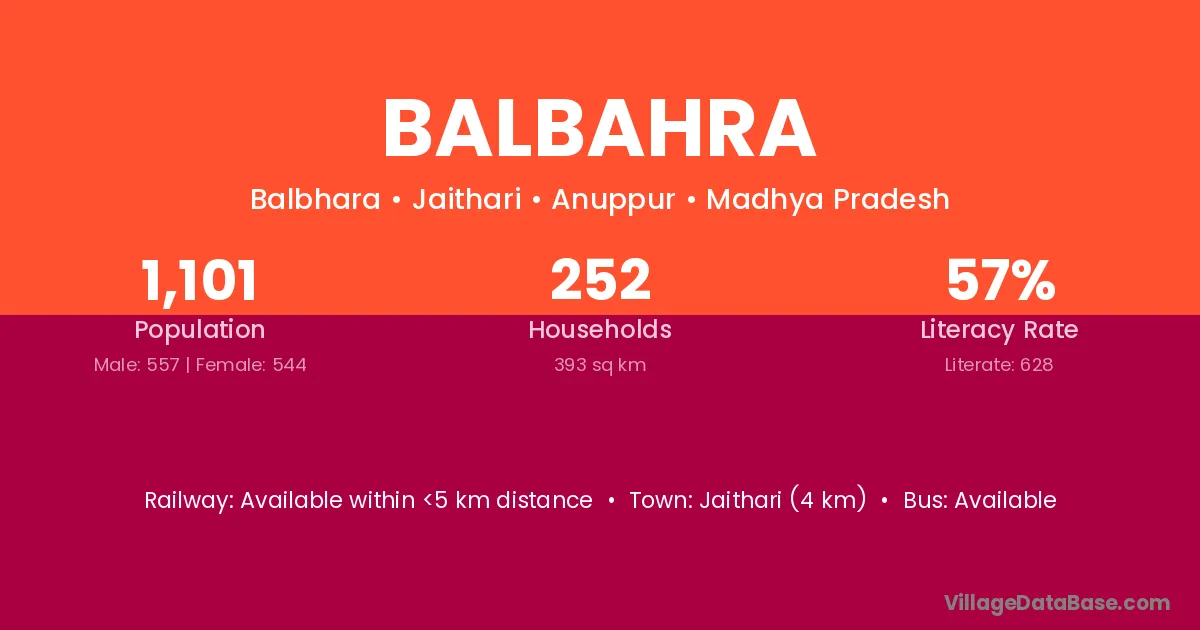 Jaithari (4 km) is the nearest town to Balbahra village for major economic activities and is located approximately 4 km away.