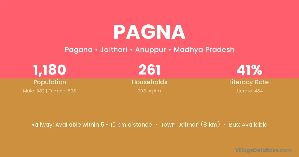 Jaithari (8 km) is the nearest town to Pagna village for major economic activities and is located approximately 8 km away.