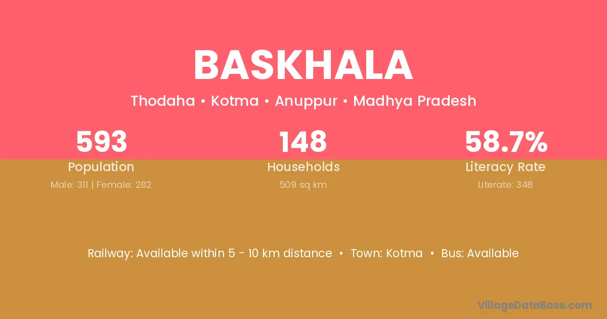 Baskhala village has a total population of 593 people, of which 311 are males and 282 are females.