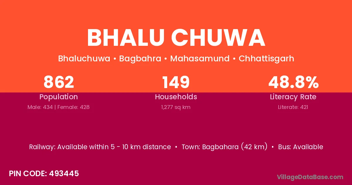 Anuppur (40 km) is the nearest town to Bhalu Chuwa village for major economic activities and is located approximately 40 km away.