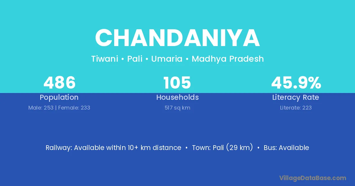 Chandaniya village has a total population of 922 people, of which 442 are males and 480 are females.