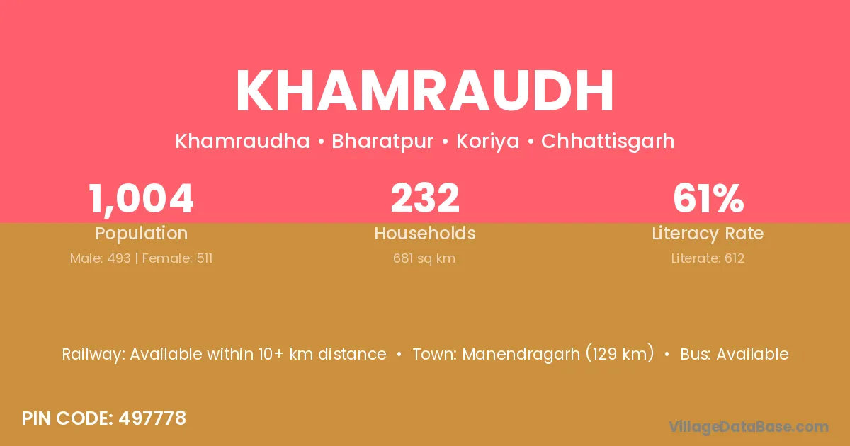 Khamraudh village has a total population of 1,284 people, of which 648 are males and 636 are females.