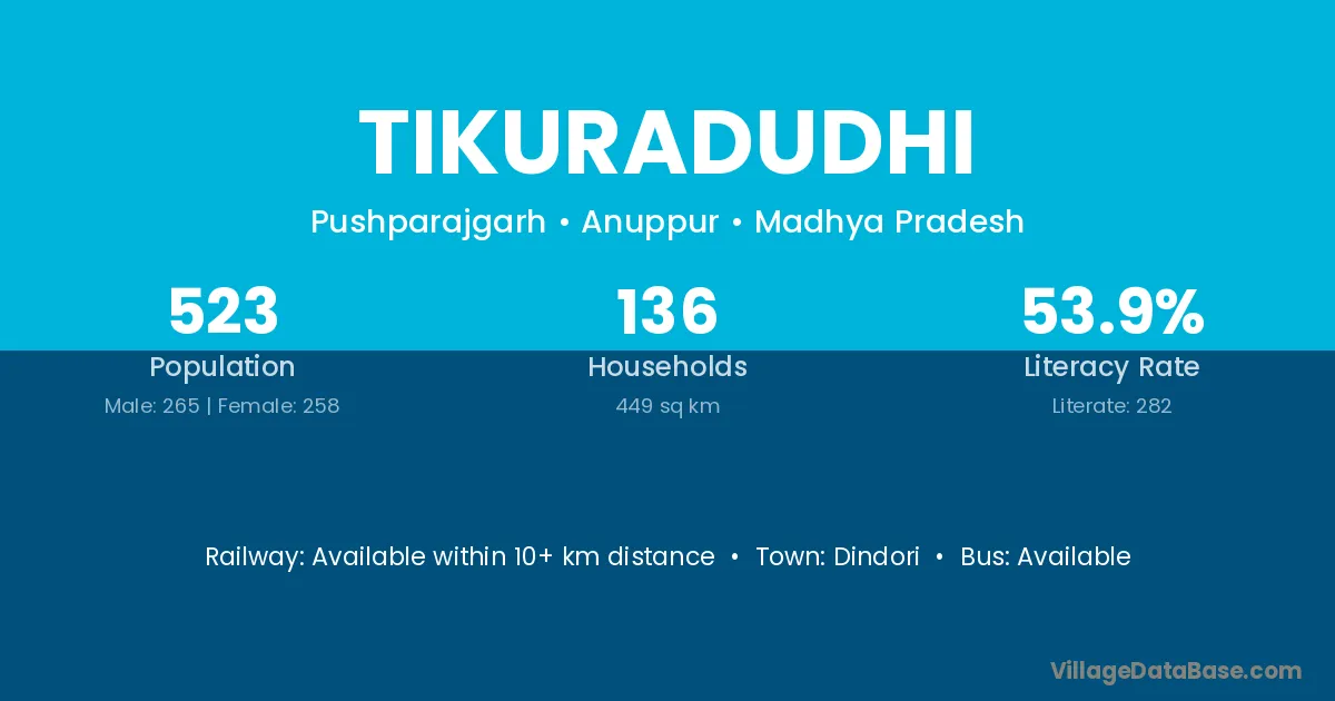 Tikuradudhi village has a total population of 523 people, of which 265 are males and 258 are females.