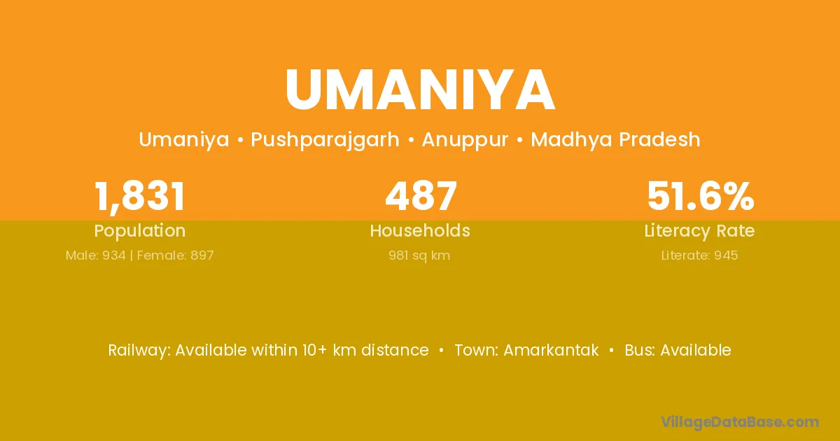 Amarkantak is the nearest town to Umaniya village for major economic activities