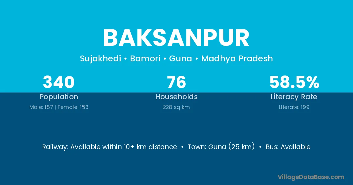 Ashoknagar (36 km) is the nearest town to Baksanpur village for major economic activities and is located approximately 36 km away.