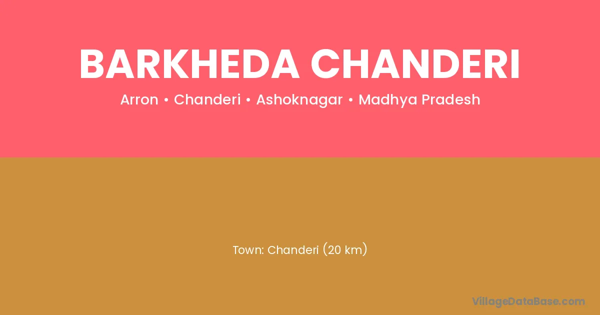 Chanderi (20 km) is the nearest town to Barkheda Chanderi village for major economic activities and is located approximately 20 km away.