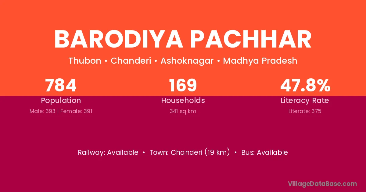 Barodiya Pachhar village has a total population of 784 people, of which 393 are males and 391 are females.