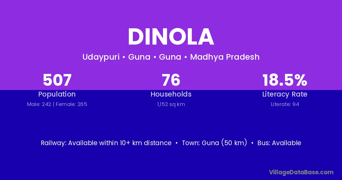 Chanderi (22 km) is the nearest town to Dinola village for major economic activities and is located approximately 22 km away.