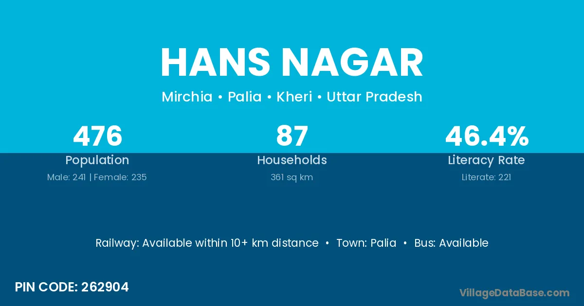 The literacy rate of Hans Nagar village is 48.11%. Male literacy stands at 55.07% and female literacy at 40.48%.