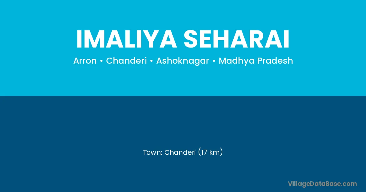 Chanderi (17 km) is the nearest town to Imaliya Seharai village for major economic activities and is located approximately 17 km away.