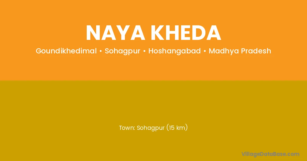 Chanderi (13 km) is the nearest town to Naya Kheda village for major economic activities and is located approximately 13 km away.
