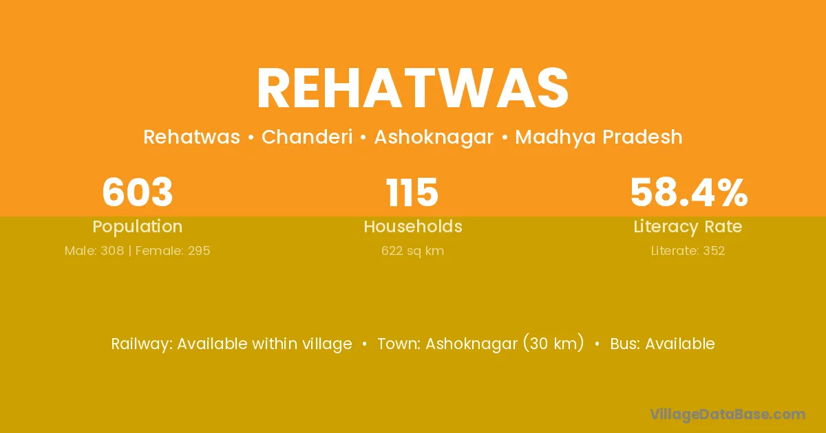 Ashoknagar (30 km) is the nearest town to Rehatwas village for major economic activities and is located approximately 30 km away.