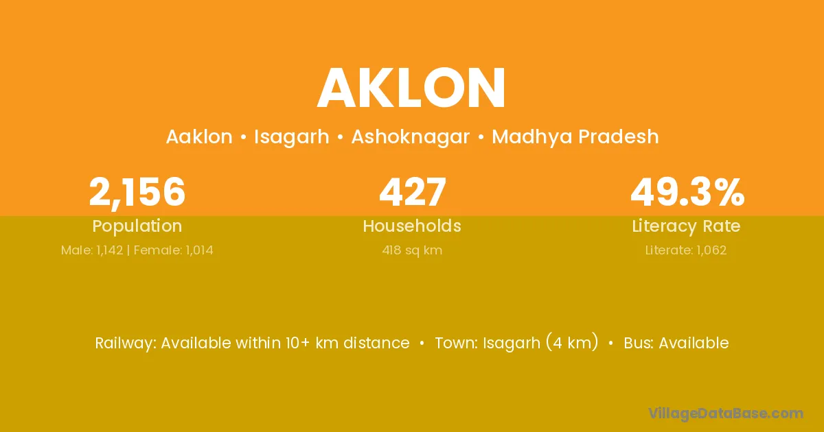 Isagarh (4 km) is the nearest town to Aklon village for major economic activities and is located approximately 4 km away.