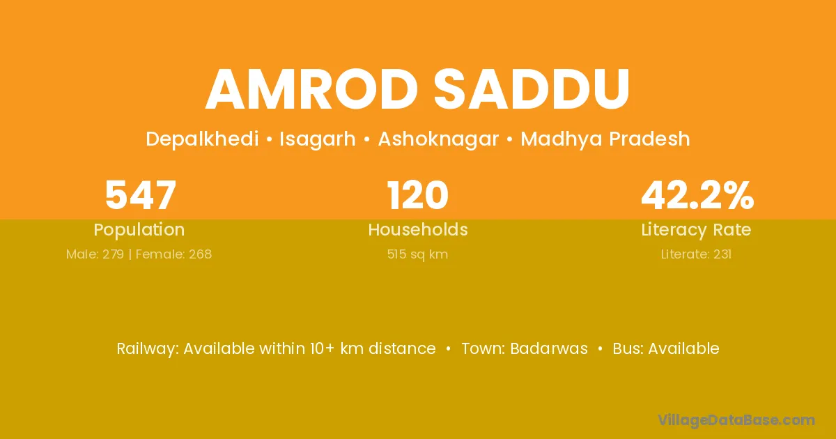 Amrod Saddu village has a total population of 547 people, of which 279 are males and 268 are females.
