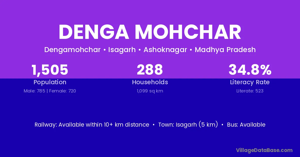 Denga Mohchar village has a total population of 1,505 people, of which 785 are males and 720 are females.