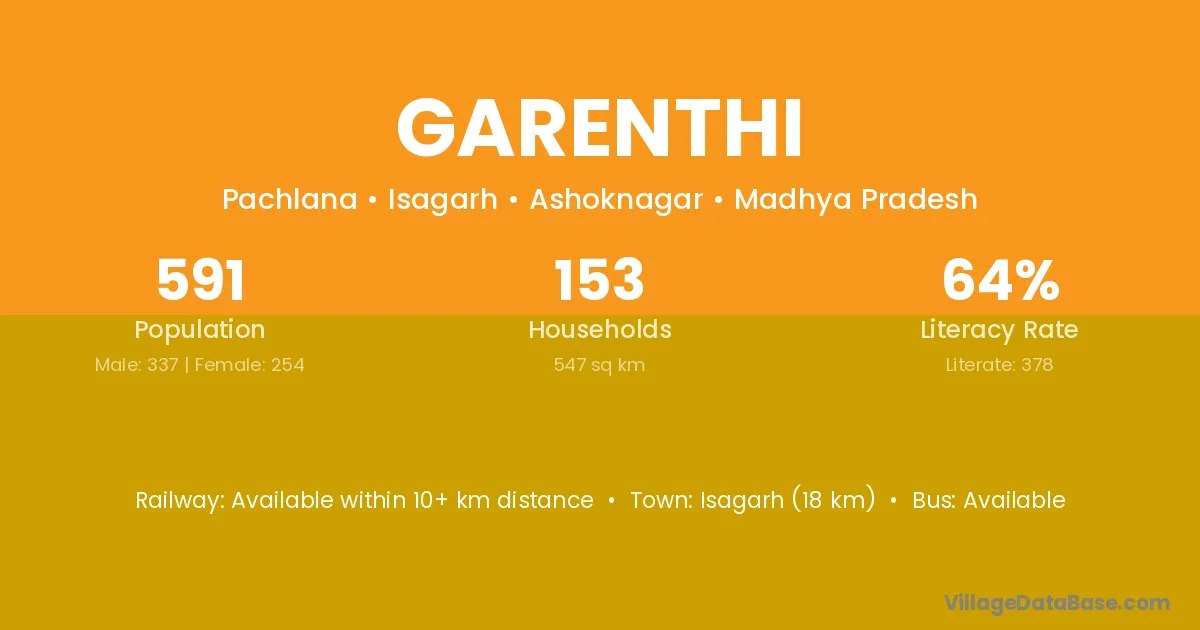 Garenthi village has a total population of 591 people, of which 337 are males and 254 are females.
