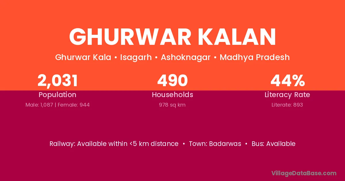 Ghurwar Kalan village has a total population of 2,031 people, of which 1,087 are males and 944 are females.