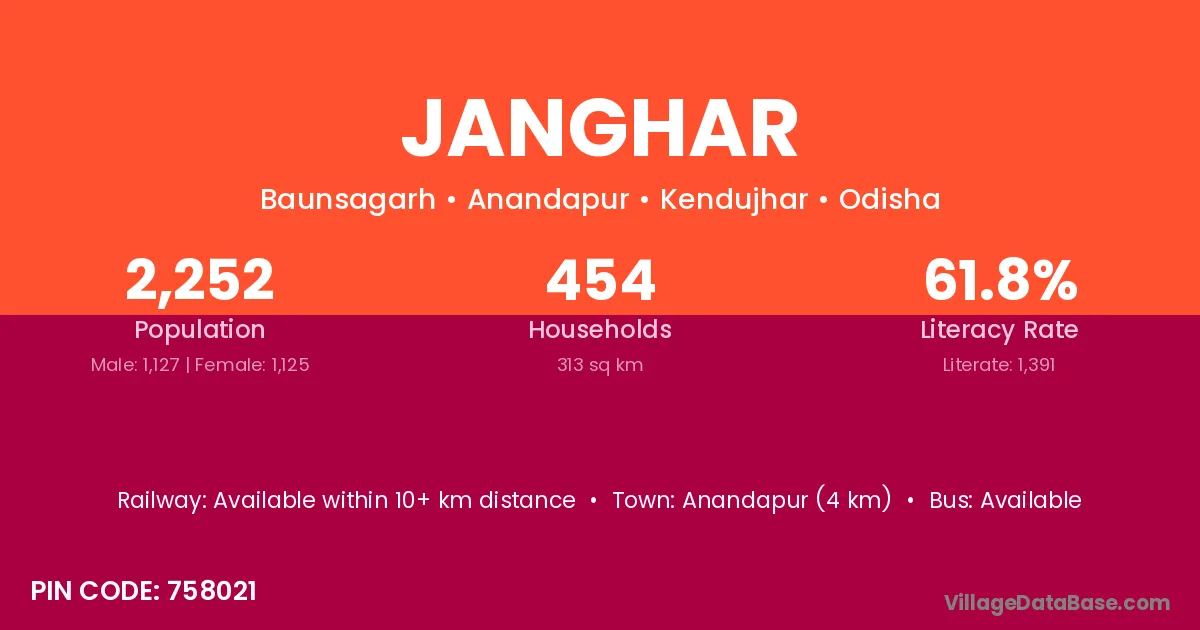 Isagarh (12 km) is the nearest town to Janghar village for major economic activities and is located approximately 12 km away.