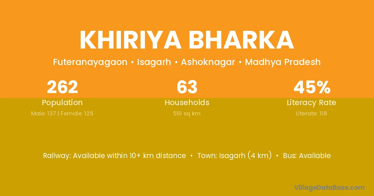 Khiriya Bharka village has a total population of 262 people, of which 137 are males and 125 are females.