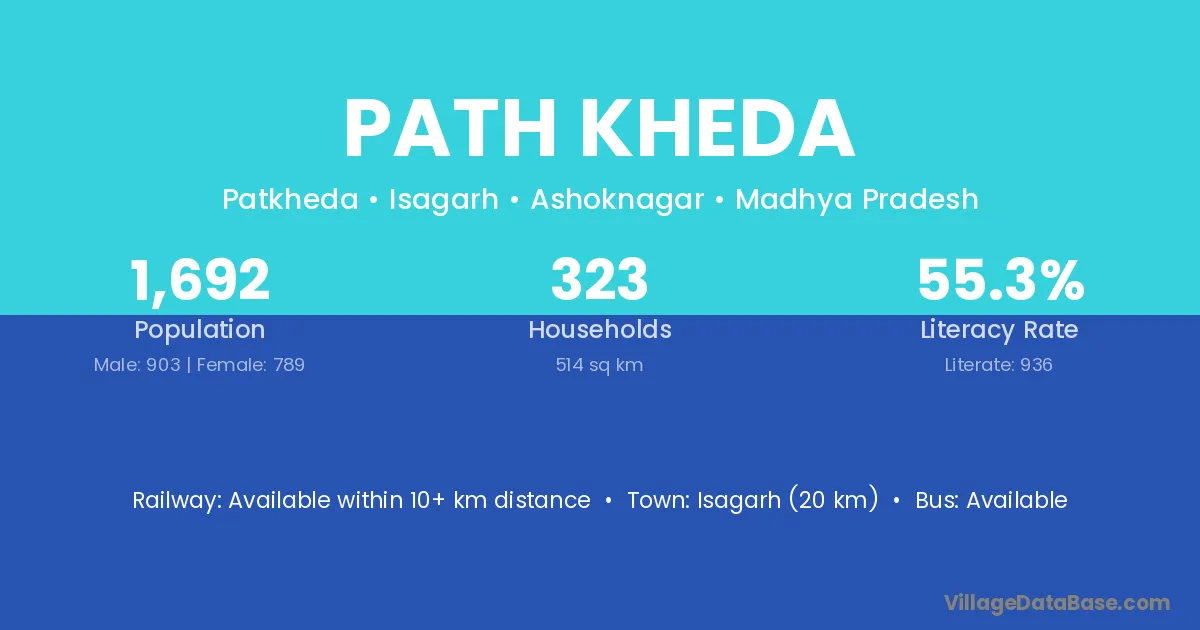 Isagarh (20 km) is the nearest town to Path Kheda village for major economic activities and is located approximately 20 km away.