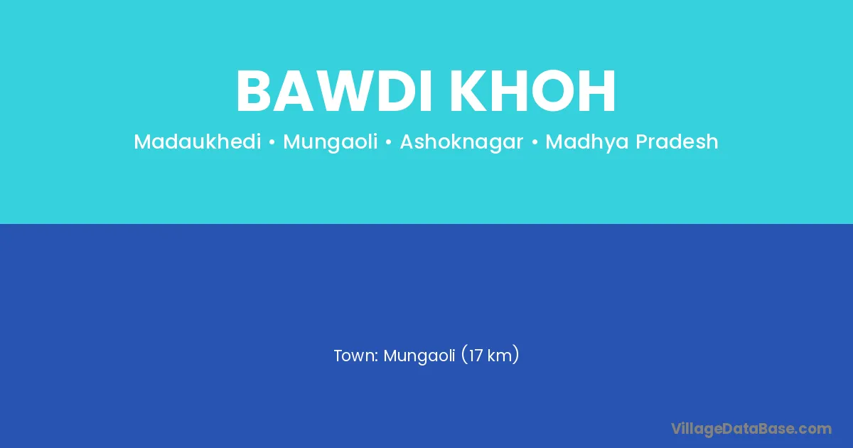 Mungaoli (17 km) is the nearest town to Bawdi Khoh village for major economic activities and is located approximately 17 km away.