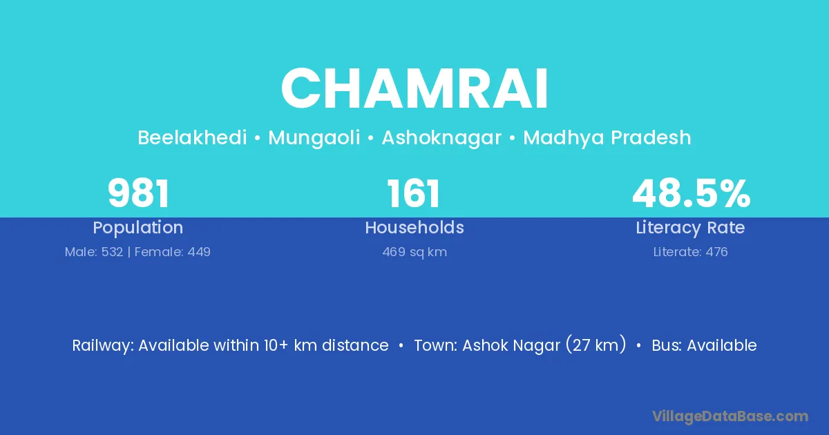 Ashok Nagar (27 km) is the nearest town to Chamrai village for major economic activities and is located approximately 27 km away.