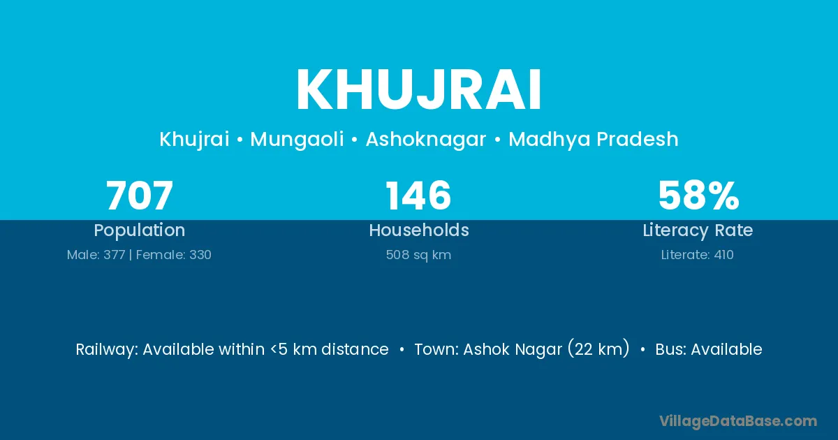 Ashok Nagar (22 km) is the nearest town to Khujrai village for major economic activities and is located approximately 22 km away.
