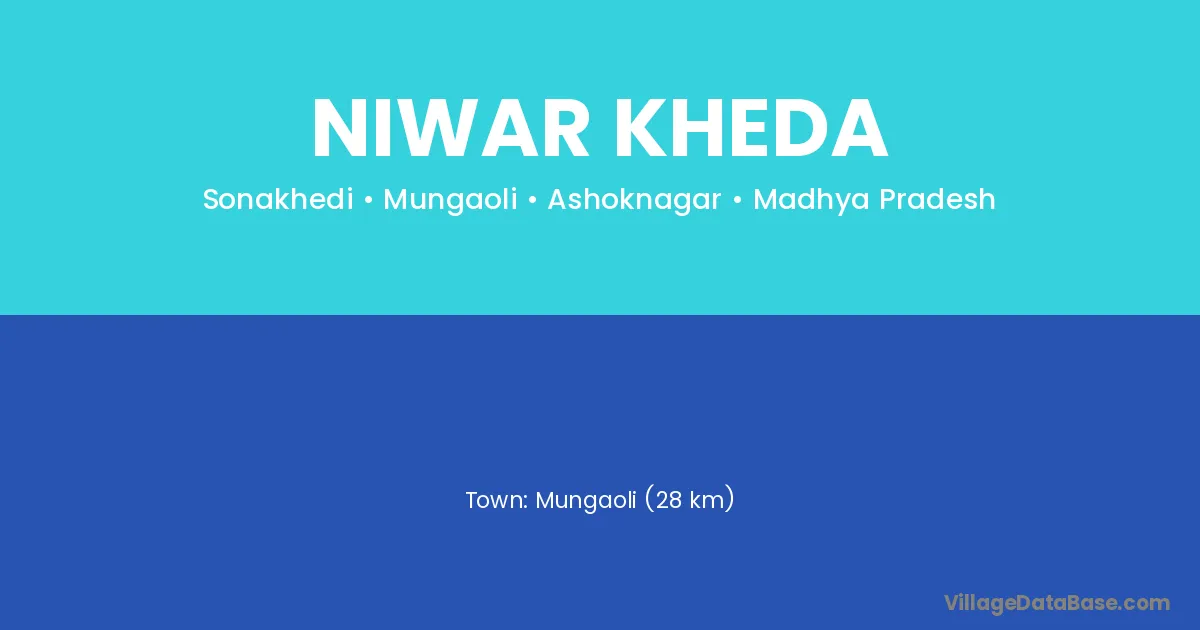 Mungaoli (28 km) is the nearest town to Niwar Kheda village for major economic activities and is located approximately 28 km away.