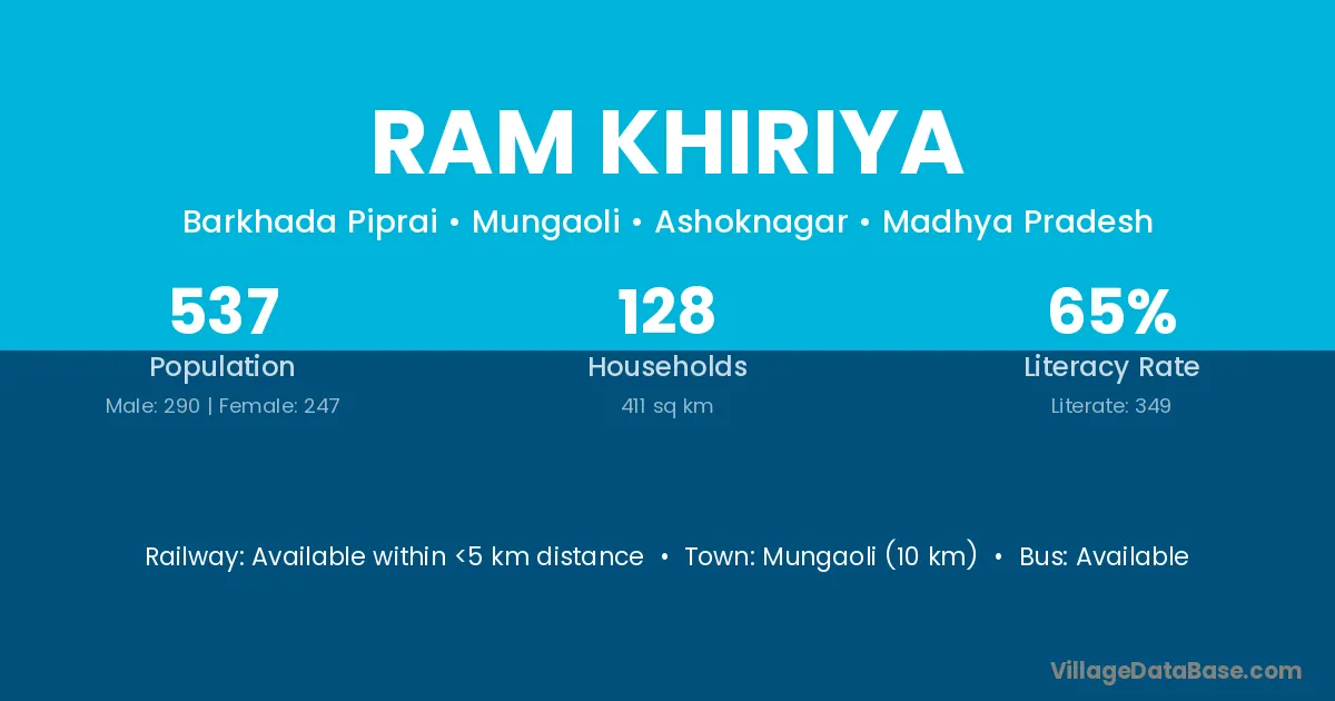 Mungaoli (10 km) is the nearest town to Ram Khiriya village for major economic activities and is located approximately 10 km away.