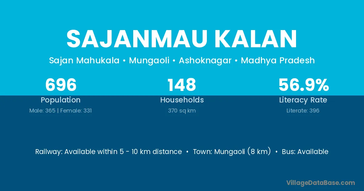 Mungaoli (8 km) is the nearest town to Sajanmau Kalan village for major economic activities and is located approximately 8 km away.