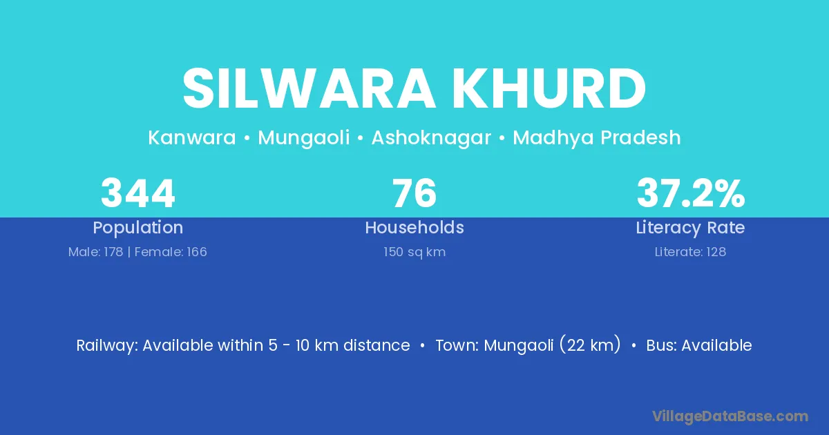 Mungaoli (22 km) is the nearest town to Silwara Khurd village for major economic activities and is located approximately 22 km away.