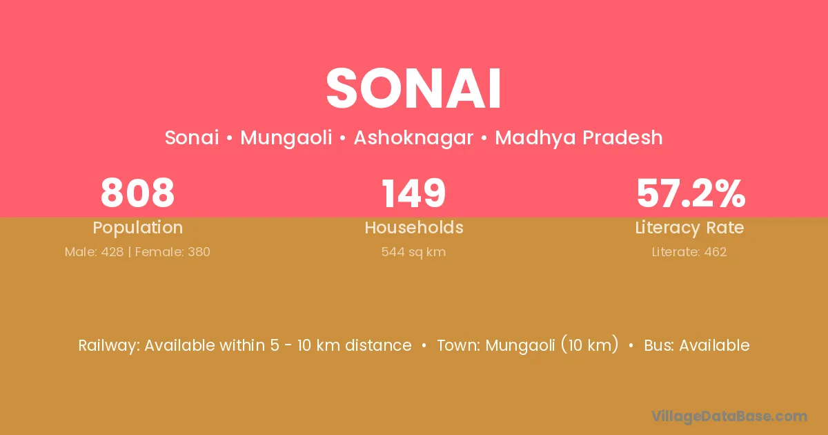 Mungaoli (10 km) is the nearest town to Sonai village for major economic activities and is located approximately 10 km away.