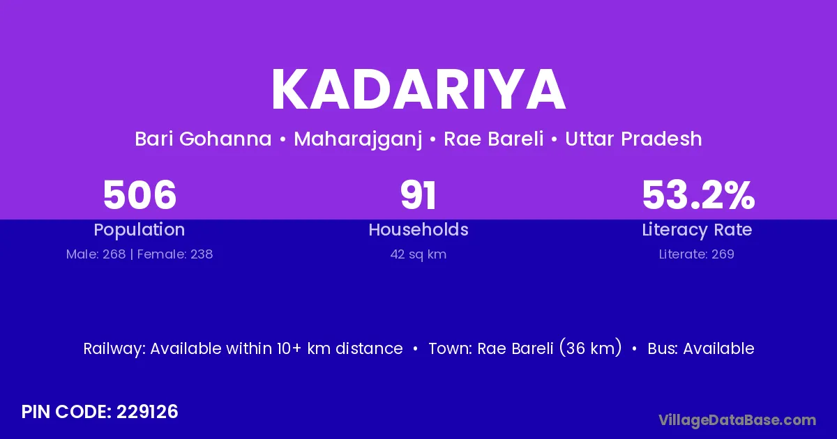 Ashoknagar (35 km) is the nearest town to Kadariya village for major economic activities and is located approximately 35 km away.
