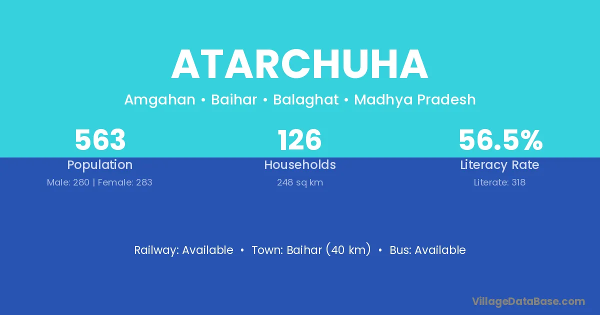 Baihar (40 km) is the nearest town to Atarchuha village for major economic activities and is located approximately 40 km away.