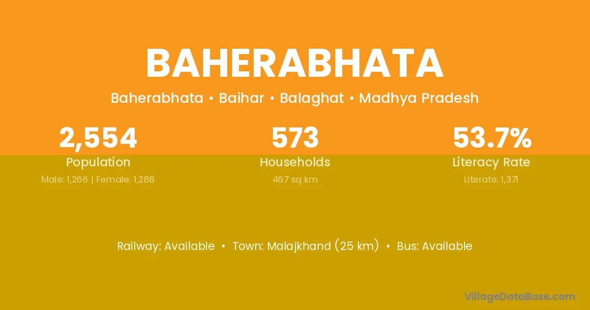 Malajkhand (25 km) is the nearest town to Baherabhata village for major economic activities and is located approximately 25 km away.