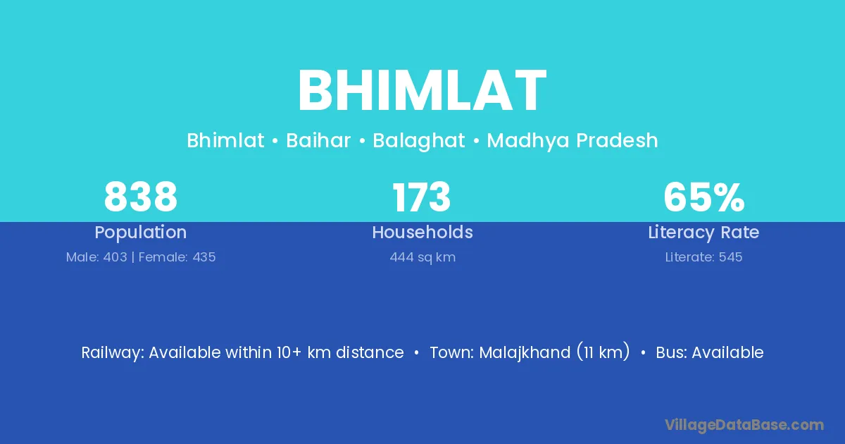 Malajkhand (11 km) is the nearest town to Bhimlat village for major economic activities and is located approximately 11 km away.