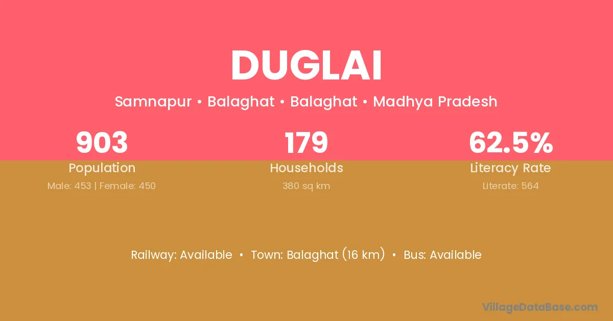 Malajkhand is the nearest town to Duglai village for major economic activities