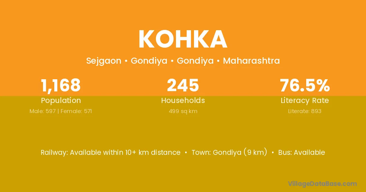 Kohka village has a total population of 1,361 people, of which 680 are males and 681 are females.