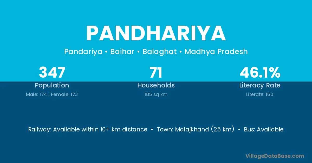 Pandhariya village has a total population of 347 people, of which 174 are males and 173 are females.