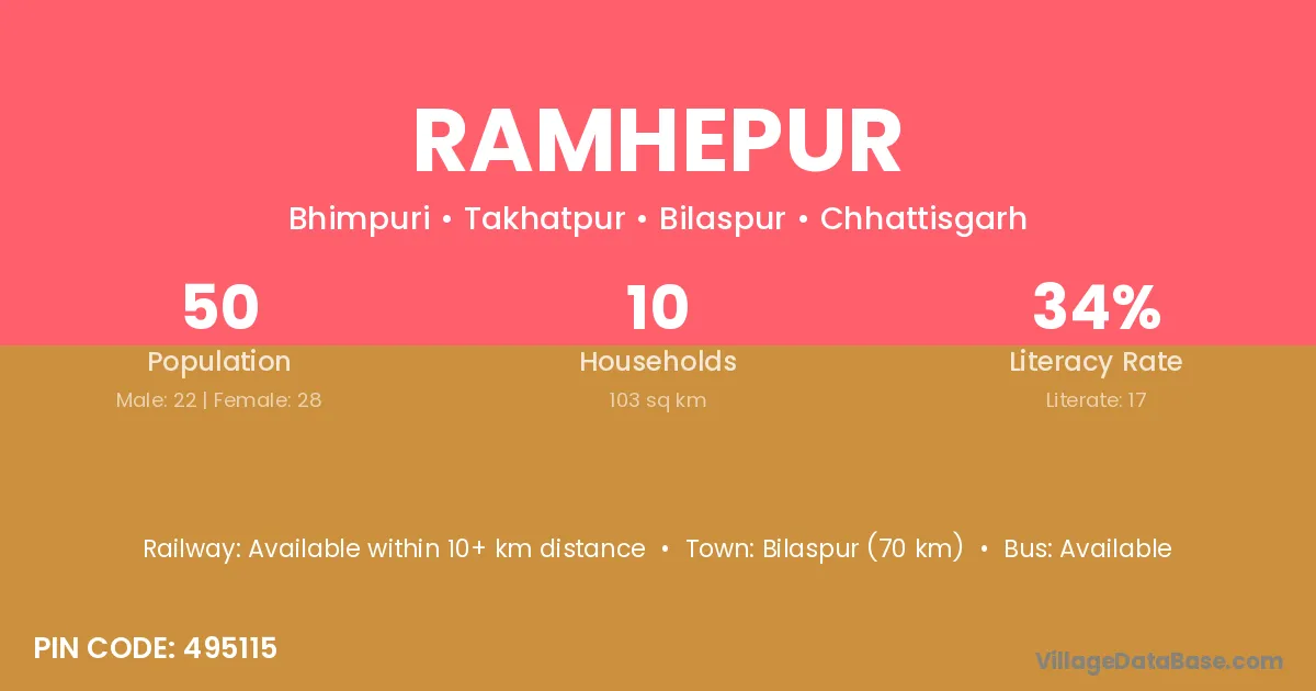 Baihar (33 km) is the nearest town to Ramhepur village for major economic activities and is located approximately 33 km away.