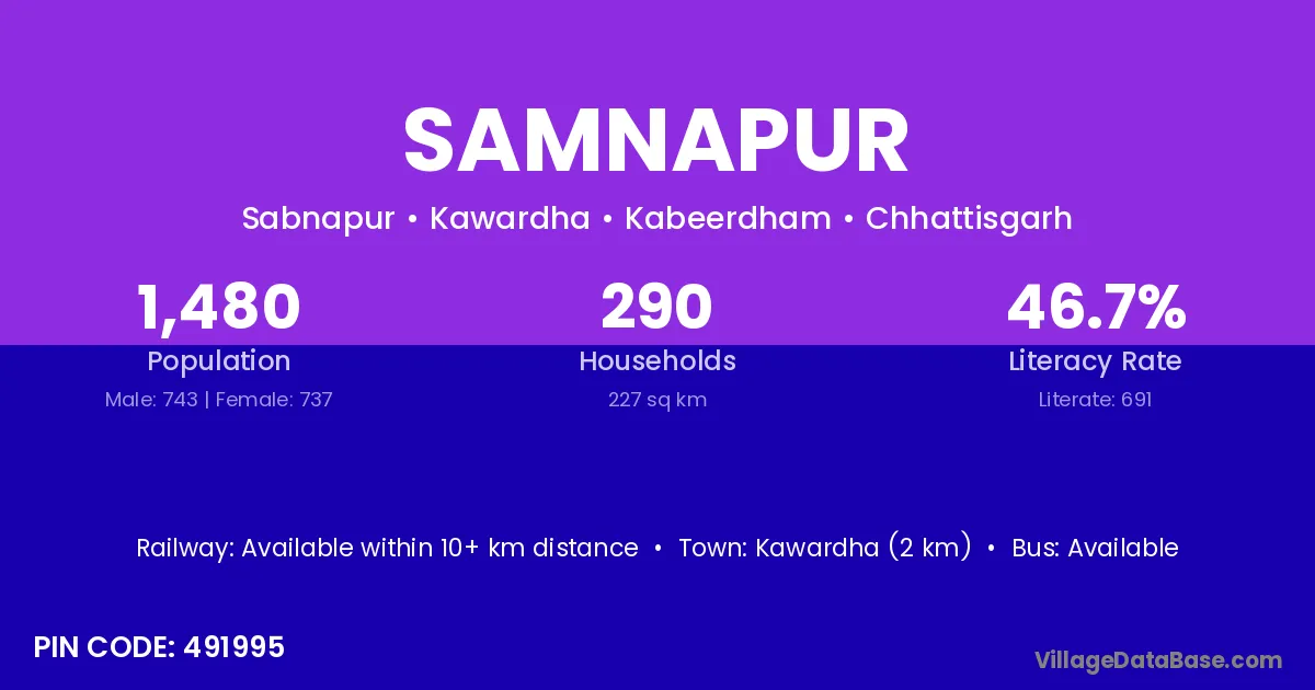 Malajkhand (18 km) is the nearest town to Samnapur village for major economic activities and is located approximately 18 km away.