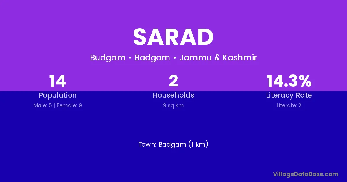 The literacy rate of Sarad village is 43.53%. Male literacy stands at 51.06% and female literacy at 34.21%.
