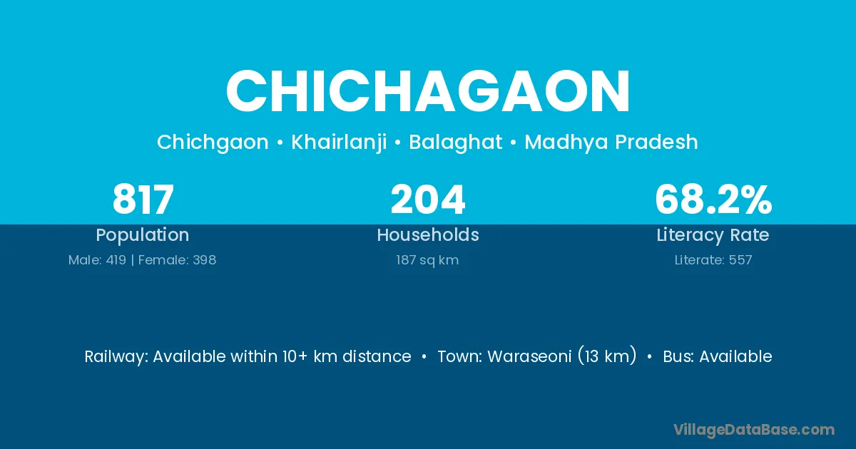 Waraseoni (13 km) is the nearest town to Chichagaon village for major economic activities and is located approximately 13 km away.