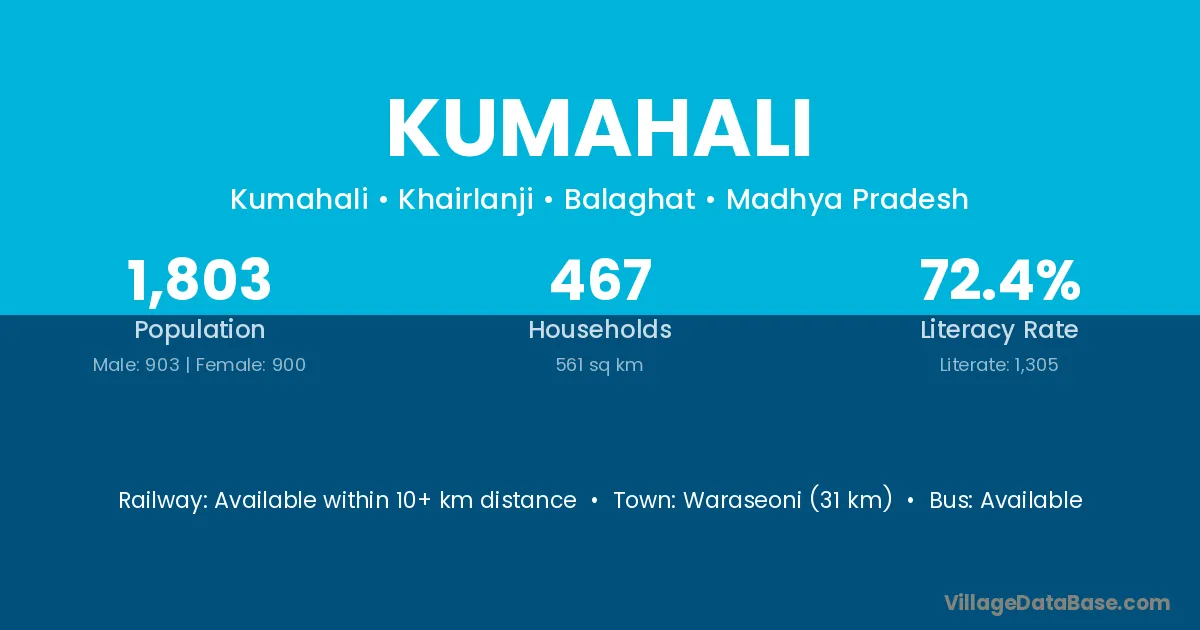 Waraseoni (31 km) is the nearest town to Kumahali village for major economic activities and is located approximately 31 km away.