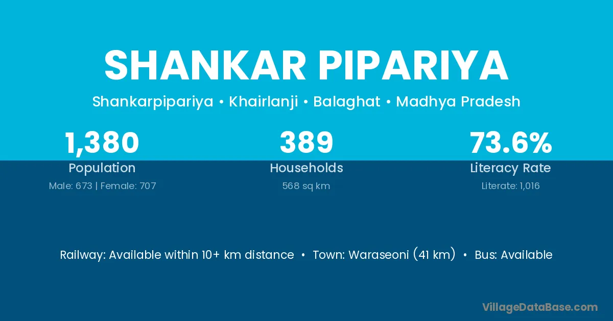 Shankar Pipariya village has a total population of 1,380 people, of which 673 are males and 707 are females.
